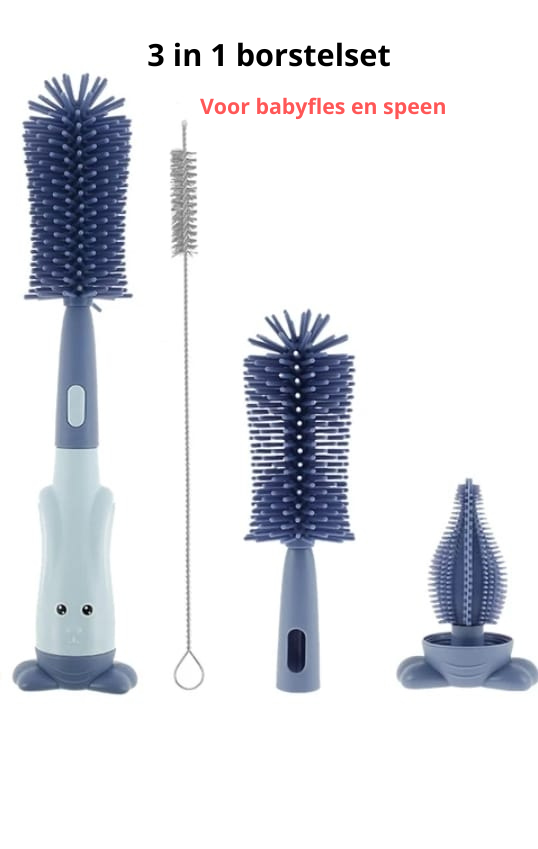 Als ouder wil je natuurlijk alleen het beste voor je kleintje. Daar hoort ook een schone fles bij! Met de 3 in 1 Baby Flessenborstel wordt het reinigen van flessen een fluitje van een cent. Deze flessenborstel is namelijk gemaakt van hoogwaardig siliconen materiaal en is volledig BPA vrij. Zo kun je met een gerust hart de fles van je baby schoonmaken.